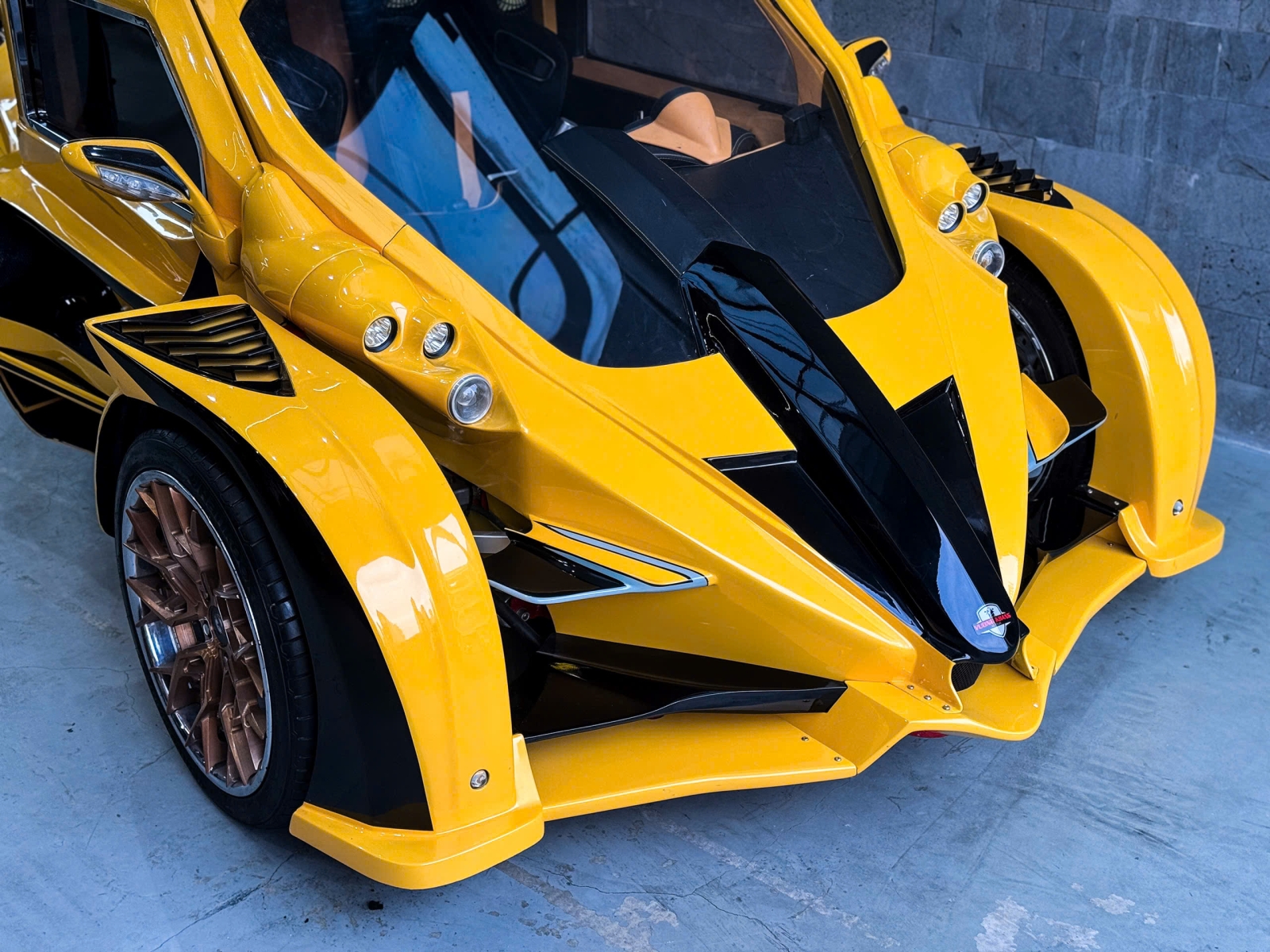 • Nội thất 2 ghế ngồi, kính chắn gió thể thao, bố trí cockpit theo phong cách xe đua