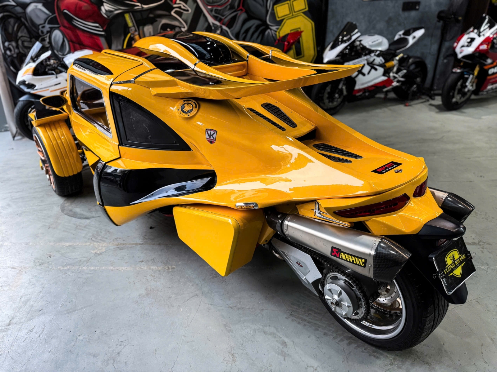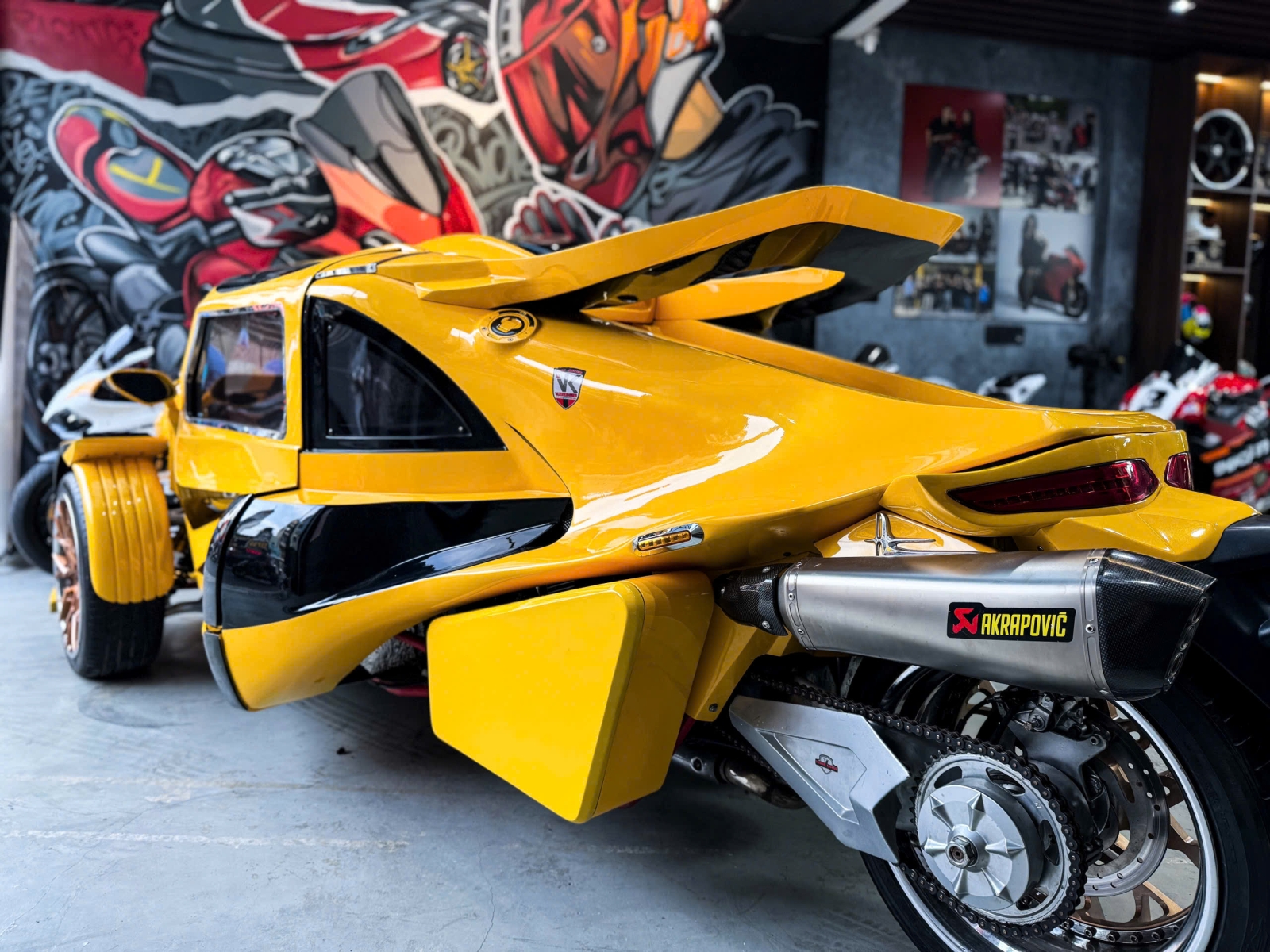 • Nhờ bàn tay tài hoa của một nghệ nhân Việt Nam, toàn bộ khung sườn và thiết kế đã được chuyển hóa hoàn toàn, tạo nên một phiên bản mang dáng dấp Campagna T-Rex 3 bánh – mẫu xe từng làm khuynh đảo giới chơi mô tô toàn cầu.